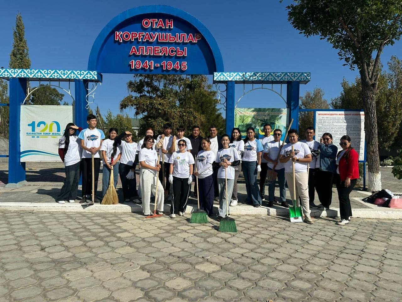 Қатысушылар аллея аумағын қоқыстан, құрғақ бұтақтар мен түскен жапырақтардан тазартып, абаттандыру жұмыстарын жүргізді.