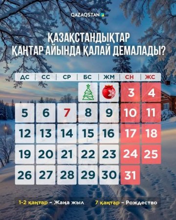2026 жылы қаңтарда қазақстандықтар қалай демалады?